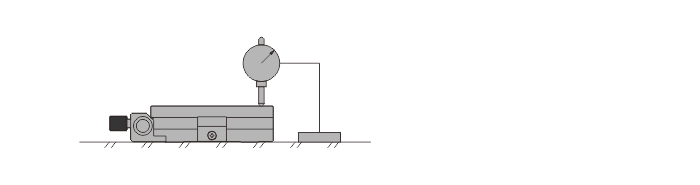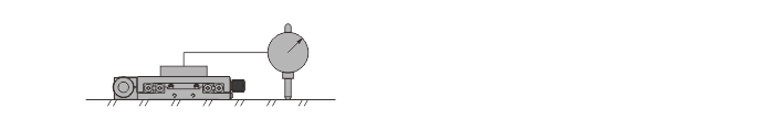 將平臺等固定在平板上。將固定在平臺上的百分表打在平板上面,全行程移動,進行測量。百分表顯示的最大值為移動平行度。